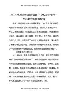 XX县工业和信息化局领导班子2025年度民主生活会对照检查材料.docx