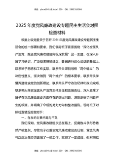 2025年度党风廉政建设专题民主生活会对照检查材料.docx