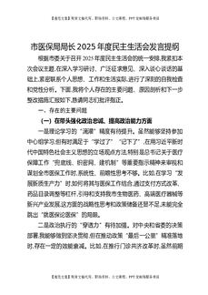市医保局局长2025年度民主生活会发言提纲.docx