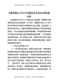 市委常委会2025年专题民主生活会对照检查材料.docx