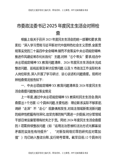 市委政法委书记2025年度民主生活会对照检查.docx
