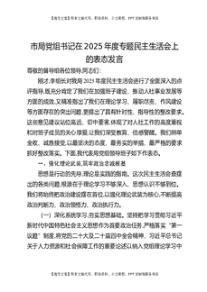 市局党组书记在2025年度专题民主生活会上的表态发言.docx