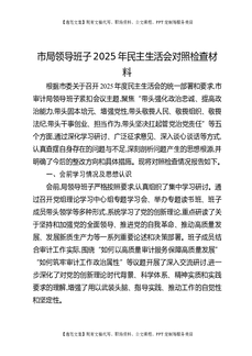 市局领导班子2025年民主生活会对照检查材料.docx