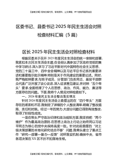区委书记、县委书记2025年民主生活会对照检查材料汇编(5篇).docx