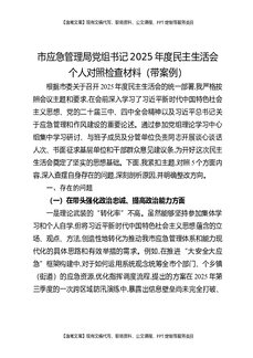 市应急管理局党组书记2025年度民主生活会个人对照检查材料(带案例).docx