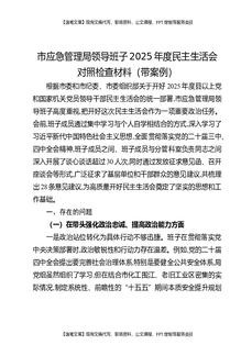 市应急管理局领导班子2025年度民主生活会对照检查材料(带案例).docx