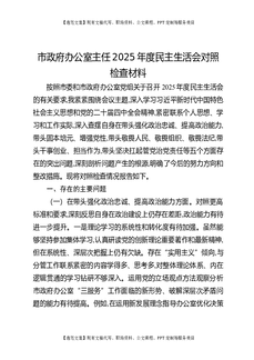 市政府办公室主任2025年度民主生活会对照检查材料.docx