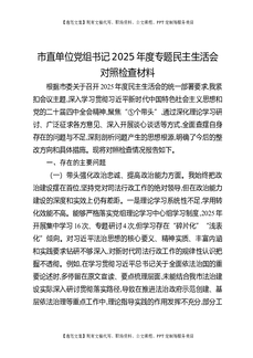 市直单位党组书记2025年度专题民主生活会对照检查材料.docx