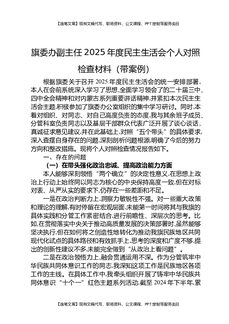 旗委办副主任2025年度民主生活会个人对照检查材料(带案例).docx