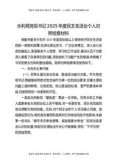 水利局党组书记2025年度民主生活会个人对照检查材料.docx