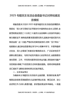 2025专题民主生活会县委副书记对照检查发言模板.docx