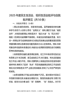 2025年度民主生活会、组织生活会批评与自我批评意见(共50条).docx