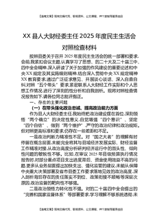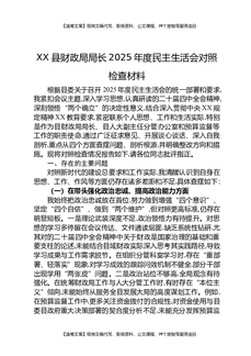 XX县财政局局长2025年度民主生活会对照检查材料.docx