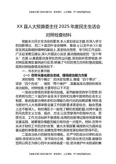 XX县人大预算委主任2025年度民主生活会对照检查材料.docx
