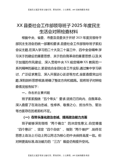 XX县委社会工作部领导班子2025年度民主生活会对照检查材料.docx