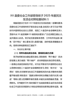 XX县委社会工作部领导班子2025年度民主生活会对照检查材料1.docx