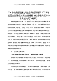 XX市政务服务和大数据局领导班子2025年度民主生活会对照检查材料(包含带头筑牢中华民族共同体意识)2.docx