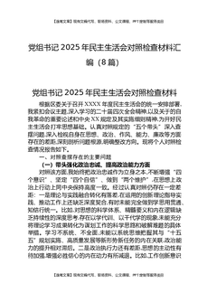 党组书记2025年民主生活会对照检查材料汇编(8篇).docx
