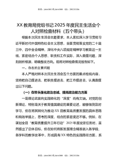 XX教育局党组书记2025年度民主生活会个人对照检查材料(五个带头).doc