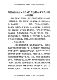 县委宣传部部长在2025年度民主生活会对照检查材料.docx