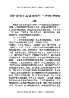 县委领导班子2025年度民主生活会对照检查材料.docx