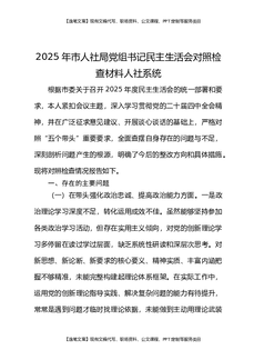 2025年市人社局党组书记民主生活会对照检查材料人社系统.docx