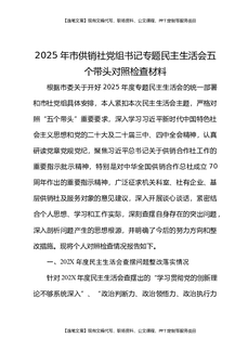 2025年市供销社党组书记专题民主生活会五个带头对照检查材料.docx