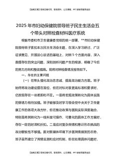 2025年市妇幼保健院领导班子民主生活会五个带头对照检查材料医疗系统.docx