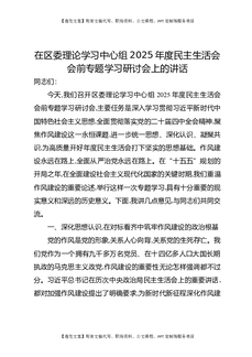 在区委理论学习中心组2025年度民主生活会会前专题学习研讨会上的讲话.docx