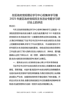 在区政府党组理论学习中心组集体学习暨2025年度区政府党组民主生活会专题学习研讨会上的讲话.docx