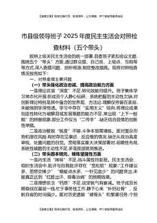 市县级领导班子2025年度民主生活会对照检查材料(五个带头).docx