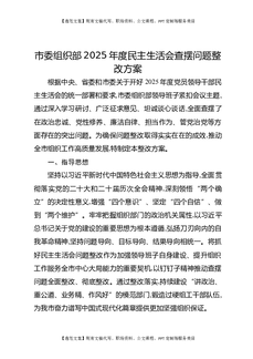 市委组织部2025年度民主生活会查摆问题整改方案.docx