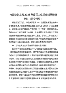 市政协副主席2025年度民主生活会对照检查材料(五个带头).docx