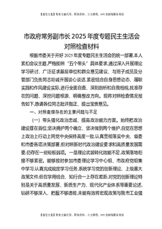 市政府常务副市长2025年度专题民主生活会对照检查材料.docx