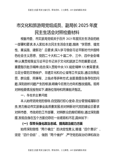 市文化和旅游局党组成员、副局长2025年度民主生活会对照检查材料.docx