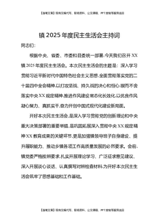 镇2025年度民主生活会主持词.docx