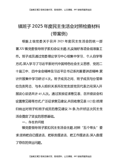 镇领导班子2025年度民主生活会对照部析材料(带案例).docx