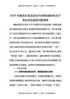 2025年度民主生活会班子对照检查材料五个带头民生服务问题清单.docx
