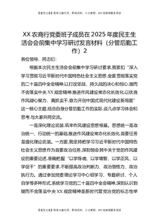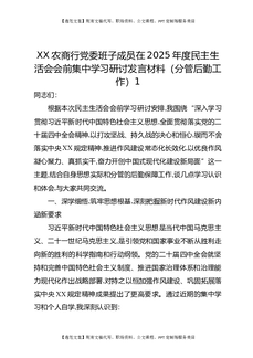 XX农商行党委班子成员在2025年度民主生活会会前集中学习研讨发言材料(分管后勤工作)2.docx