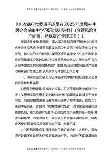 XX农商行党委班子成员在2025年度民主生活会会前集中学习研讨发言材料(分管风险资产处置、特殊资产管理工作)1.docx