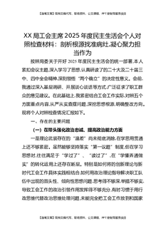 XX局工会主席2025年度民主生活会个人对照检查材料:剖析根源找准病灶,凝心聚力担当作为.docx