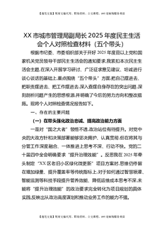XX市城市管理局副局长2025年度民主生活会个人对照检查材料(五个带头).docx