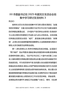 XX市委副书记在2025年度民主生活会会前集中学习研讨发言材料3.docx