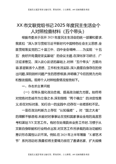 XX市文联党组书记2025年度民主生活会个人对照检查材料(五个带头).docx