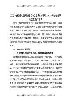 XX市税务局局长2025年度民主生活会对照检查材料1.docx