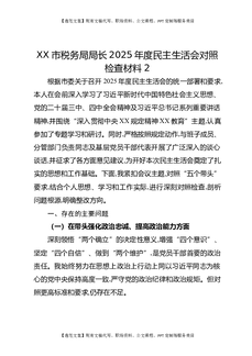XX市税务局局长2025年度民主生活会对照检查材料2.docx