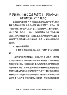 县委研究室主任2025年度民主生活会个人对照检查材料(五个带头).docx