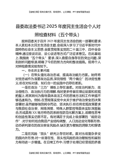 县委政法委书记2025年度民主生活会个人对照检查材料(五个带头).docx