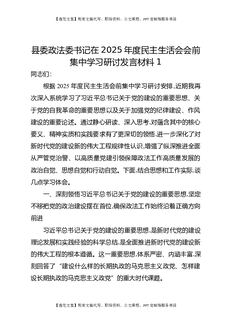 县委政法委书记在2025年度民主生活会会前集中学习研讨发言材料1.docx