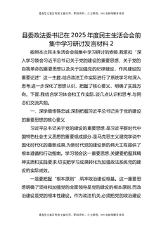 县委政法委书记在2025年度民主生活会会前集中学习研讨发言材料2.docx